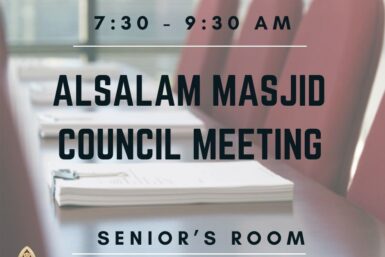 WHEN: Sunday, Feb 8th, 2026 | 7:30 – 9:30 AM WHERE: Senior’s room (in the new building wing, first floor) FOR: Elected Council members – community members also welcome during the open session AGENDA: Quran Recitation Pending Resolutions January 2025 Meeting Notes December 2025 Meeting Notes January 2026 Meeting Notes Read More …