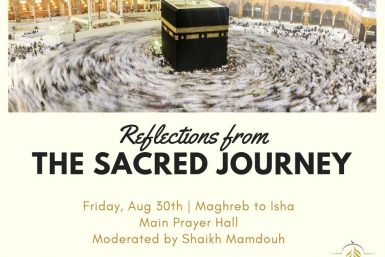 WHEN: Friday, Aug 30th, from Maghreb to Isha WHERE: Main prayer hall SPEAKER: Shaikh Mamdouh Dinner will be served after Isha