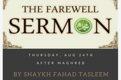 WHEN: Thursday, Aug 31st, at Maghreb WHERE: Multi-purpose Hall The family of Zakaria Mohannad Mohammad Awad, grand son of Br. Mohammad Awad, invites you for Iftaar on Yawm-u-Arafah to celebrate his Aqiqah. Everyone is welcome.