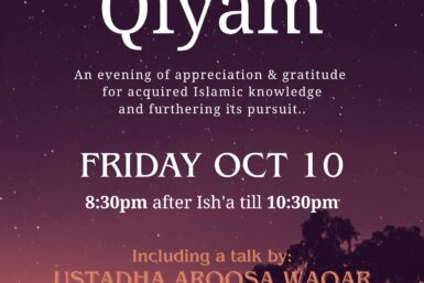 WHO: Sisters, Ages 10 – 25 SPEAKER: SR. Nisreen Sarmeni WHEN: Saturday, August 2nd, 2025 (9:50 pm to 12:30 AM) WHERE: Main prayer hall Registration Link: http://bit.ly/GirlsQiyamNight Note: Registration is required to attend the event. Join us on Saturday, August 2nd, 2025 (9:50 pm to 12:30 AM) in the main prayer hall for Spiritual Qiyam Night! Program will Read More …