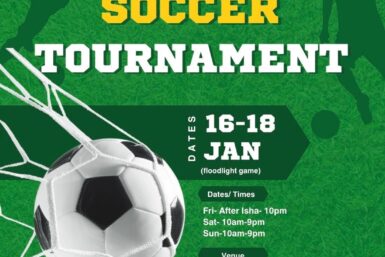 WHEN: January 16th to 18th | play time shared below WHERE: Masjid AlSalam Soccer field @ 16700 Old Louetta Road, Spring, TX 77379 REGISTRATION LINK: https://forms.gle/nz4gzbAMhZbEF4pL6 ORGANIZERS: Office of Youth Development (OYD) Time slots: Friday: after Isha to 10 PM Saturday: 10 AM to 9 PM Read More …