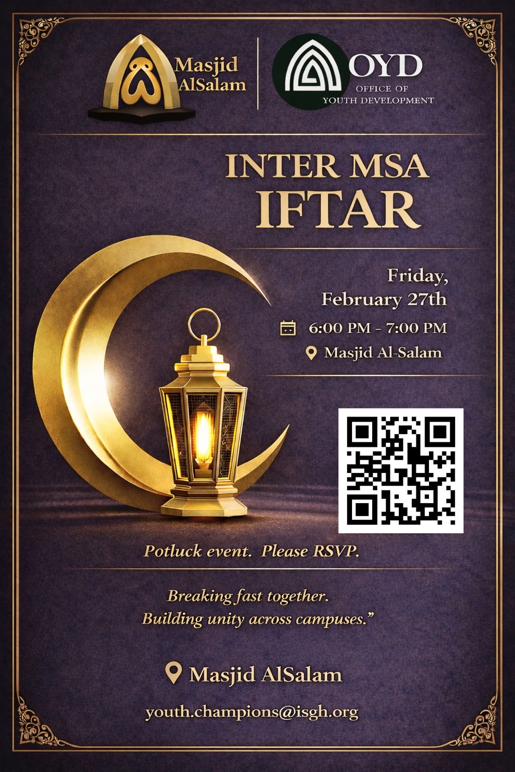 - Calling all MSA high school students from ALL schools! Join us for a special evening of unity as we break our fast together and connect across campuses.
