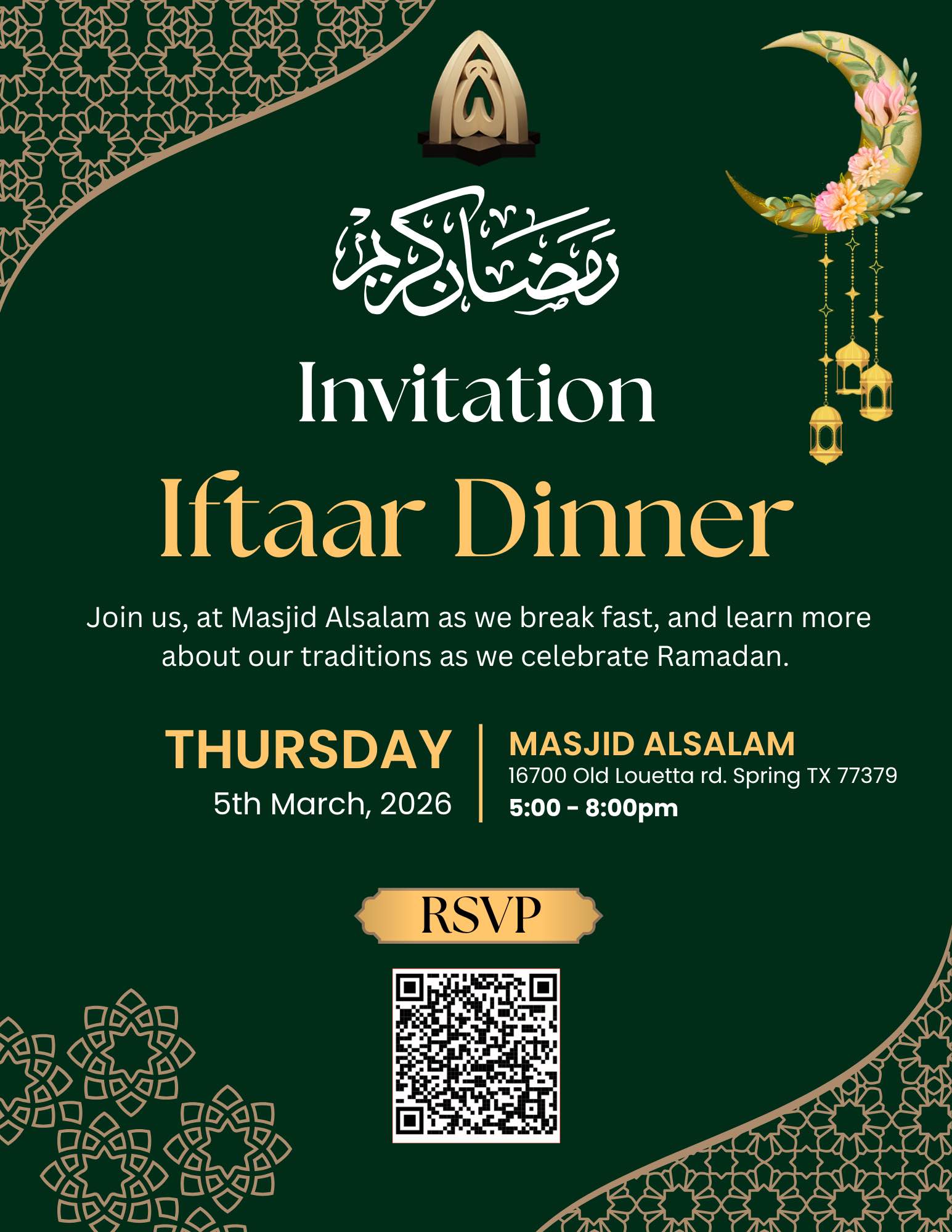 WHERE: Masjid AlSalam Gym | 16700 Old Louetta Road, Spring, Texas 77379