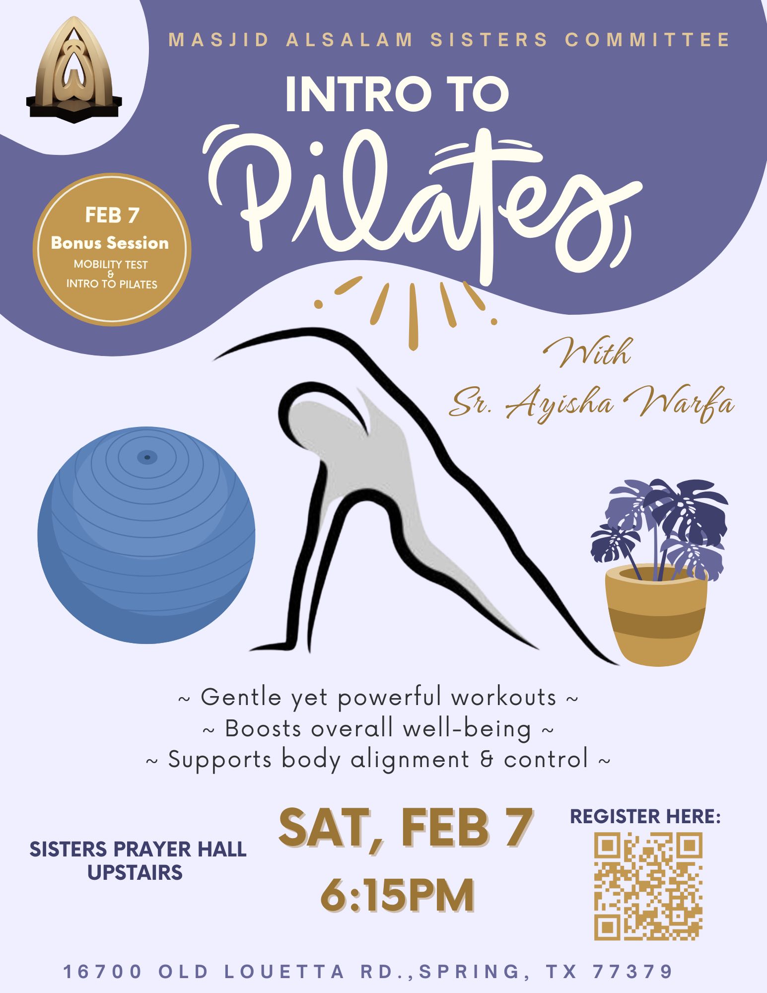 • Masjid AlSalam’s Sisters Committee presents this introductory session on Pilates