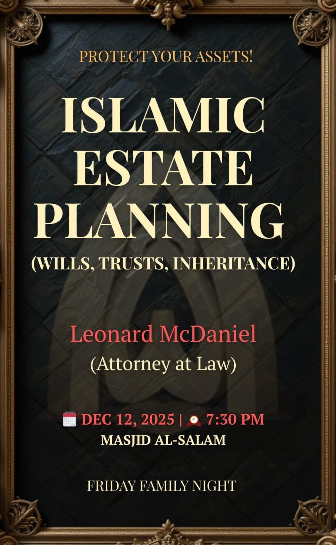 WHEN: Friday, Dec 12th, 2025 | After Isha (7:30 PM)