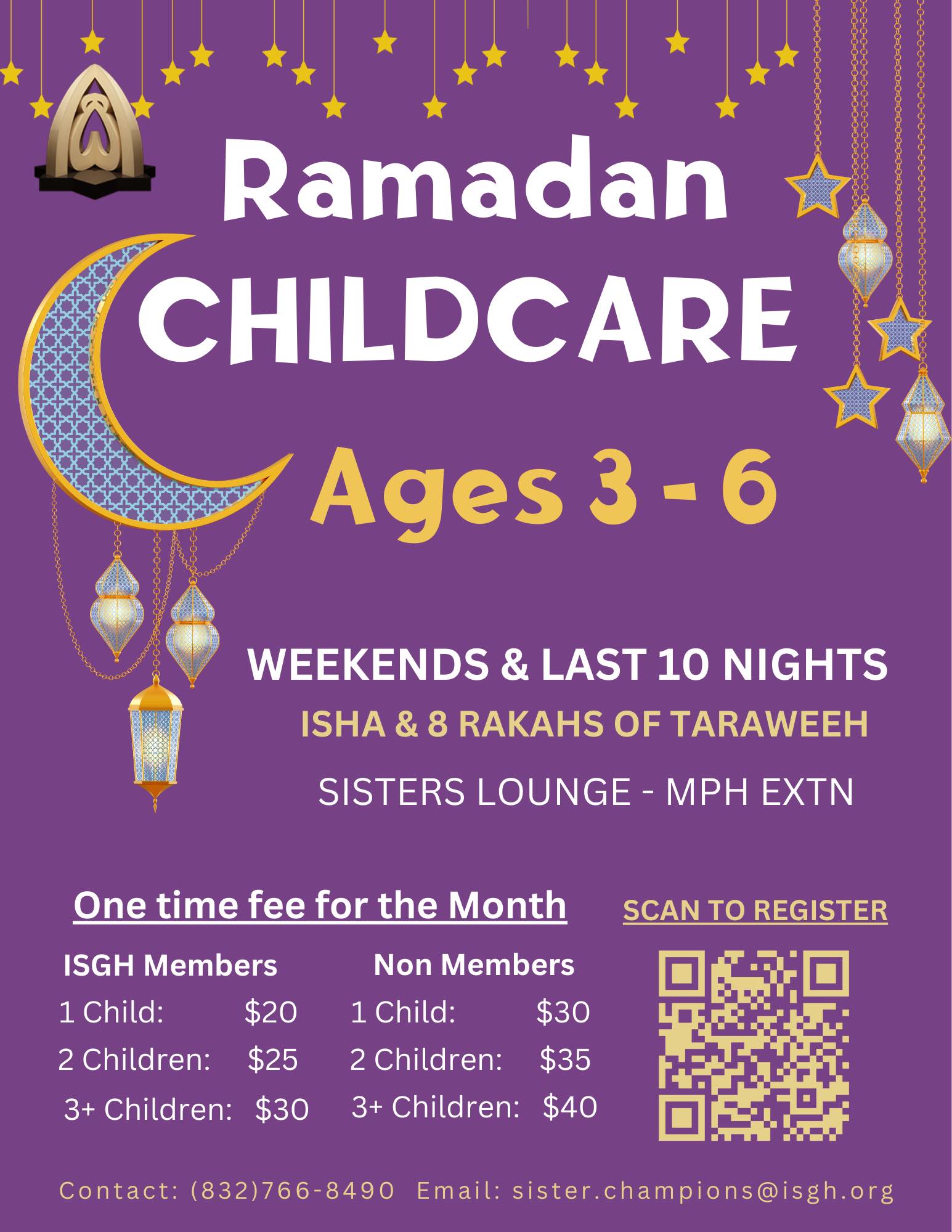 Childcare services will be available this Ramadan at Masjid AlSalam during Taraweh prayers, for a nominal charge, payable in advance for the entire month.