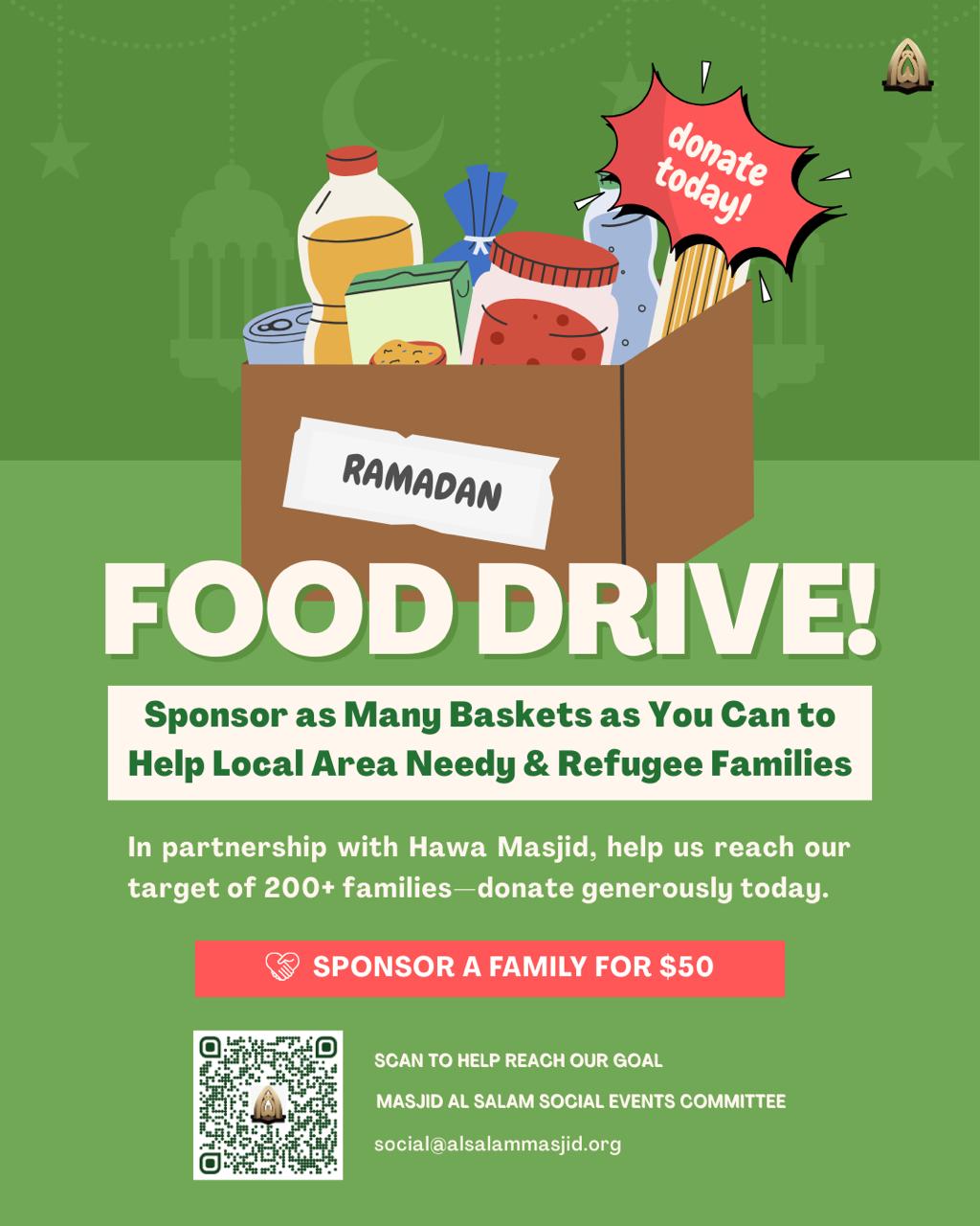 • Please join us in the Food Drive for Refugee and Needy Families Locally!