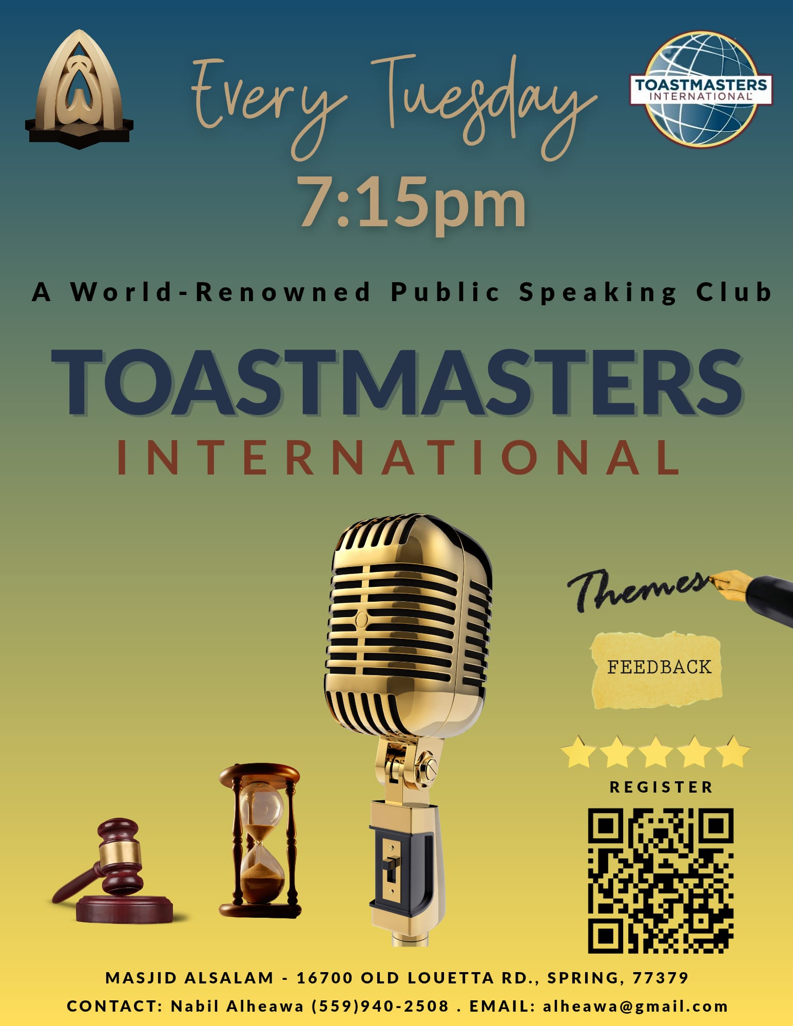 Join us at The Masjid Alsalam Toastmasters! 🎤✨